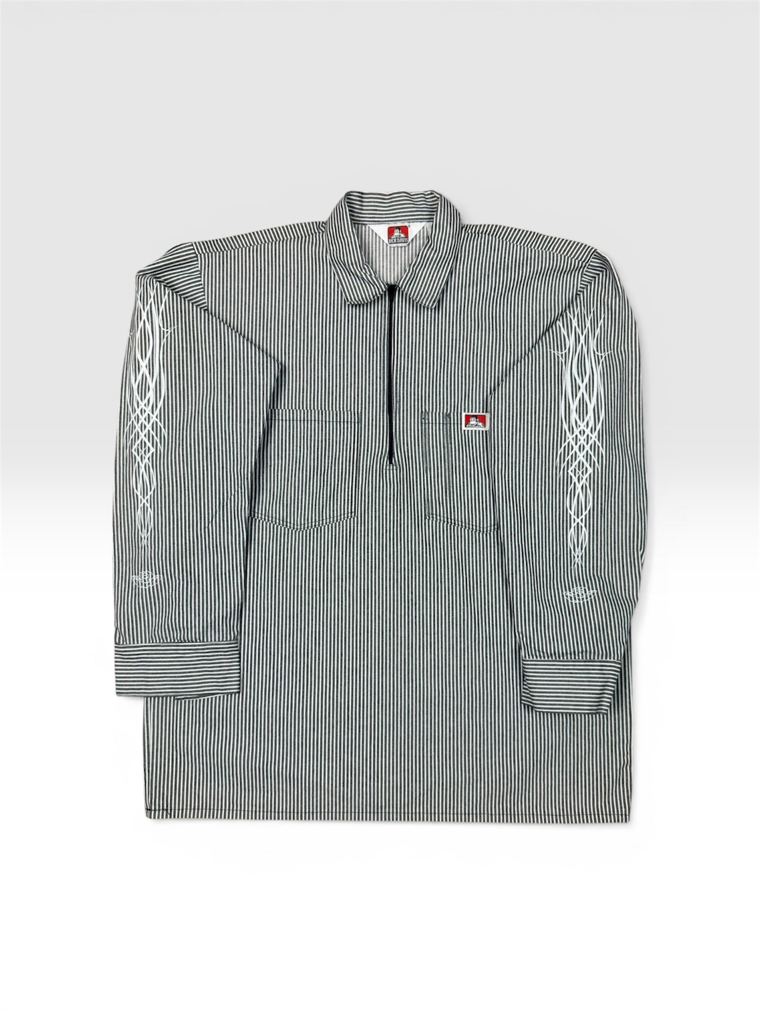 Work Shirt 4 - Hickory Stripped, Ben Davis, Made in USA, Tag reads size Large.